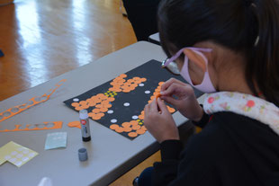 画用紙に丸シールを貼ってね!巨大壁画になるよ