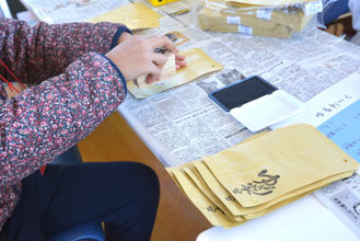 「ゆるり家」のハンコを押したり封筒を作ってね