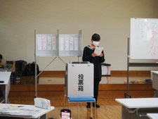 今日のこども会議では、こどものまちの町長を決める町長選挙が行われました。