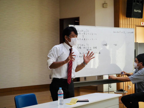 「たとえば、明るくて楽しいまち、だったら、そのためにどんな取り組みをする?具体的に何をするか、まで言えるようにしよう」