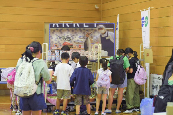 コープこうべさんの出店では、おかしやカップヌードルが並びます。