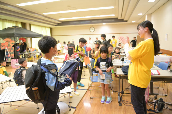 午後からは全こども店長が集合し、自分たちのお店のことを決めていきます。今年はおとなスタッフ達が『しらべる課』『アイデアおたすけ課』『まちづくり課』『おかねだしたろ課』4つの課を開いて子どもたちをサポート。やりたいアイデアがあふれていて、それをどうやって実現できるのか知りたいグループもあれば、まだまだ悩み中で、どんなお店をするのか思案中のグループも。景品を調べに『しらべる課』にやってきたグループは、「1つで何円くらいの景品を調べる?」と聞かれザワザワ。グループで、その場で話し合い、1等〇円□個、2等〇円□個、3等〇円□個と決めたけれど…。大人スタッフが計算すると残念ながら景品総額だけで開店準備金をオーバー!こども店長たちのこども店舗の開店資金は、どのお店も一律で上限が決まっています。この準備金をふんだんに使うグループもあれば、節約志向に走ってほとんど残ってしまうグループも。昨年は節約グループが多かったのですが、せっかくだから与えられた準備金はギリギリまで上手く使って欲しく、これがなかなか難しいみたいです。