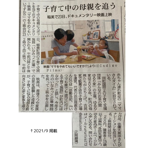 映画「ママをやめてもいいですか!?」上映会開催について神戸新聞さんに紹介していただきました。(2021/9)