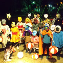 そんな妖怪たちと、夜の公園に集まって百鬼夜行。ただただ妖怪になって集まり、提灯を持って歩き回るだけなのですが、非日常な状況を大人も子どももとても楽しんでいました。