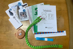 「長さの探検」はオンライン講座での開催で、講師は「数学で育ちあう会」の算数・数学指導者の先生方。受講者のみなさんには事前にたくさんの教材を郵送し、当日は身体を使った実際の体験から、量感覚を楽しく学んでいただきました。