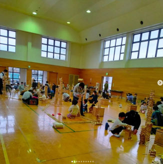 滋賀県のエール株式会社さんに2万5千ピースのカプラを持ってきていただき、はじめは自分達の塔を、そしてみんなの塔を線路でつなげて大きな街を作るワークショップを行いました。