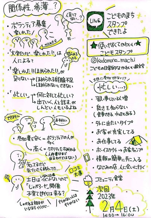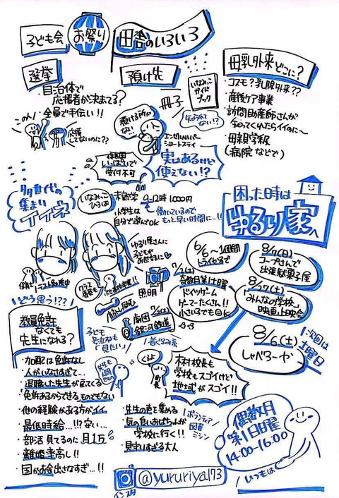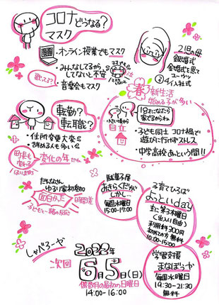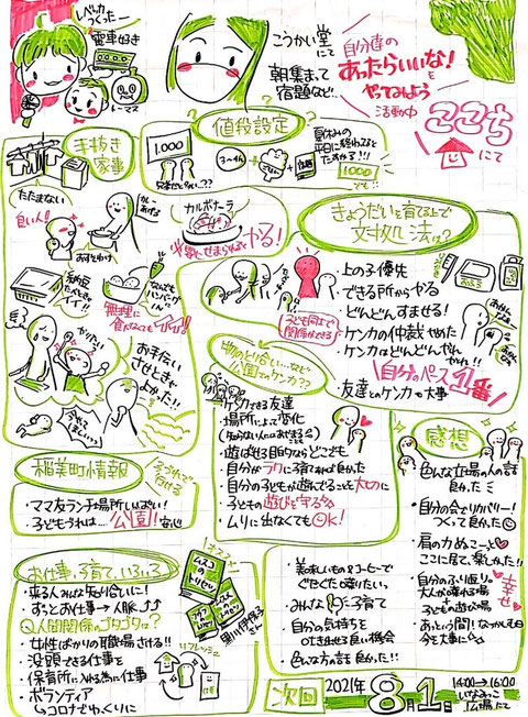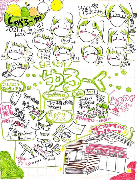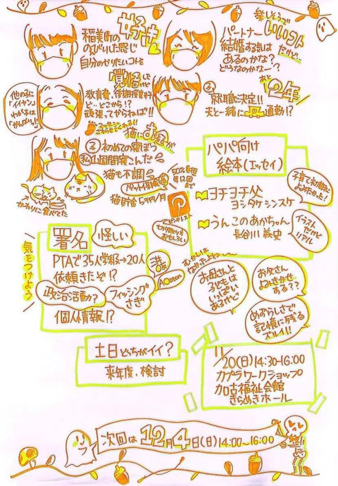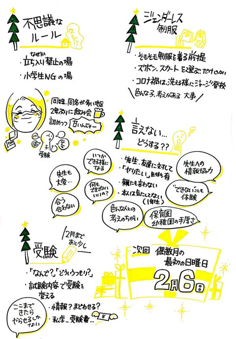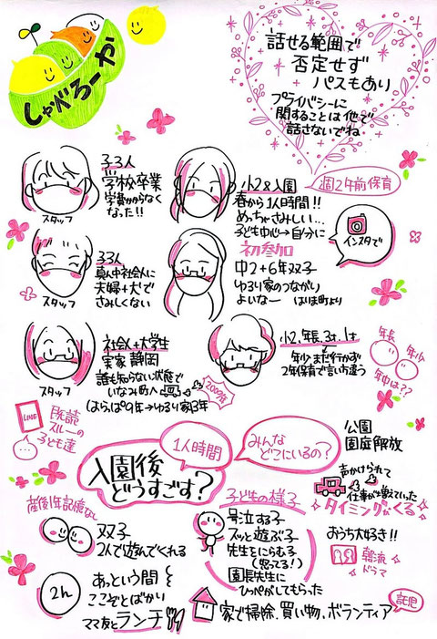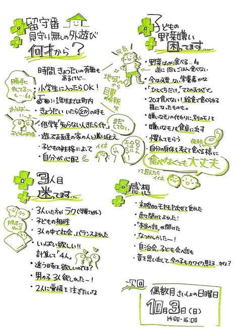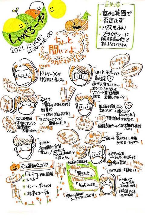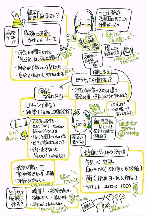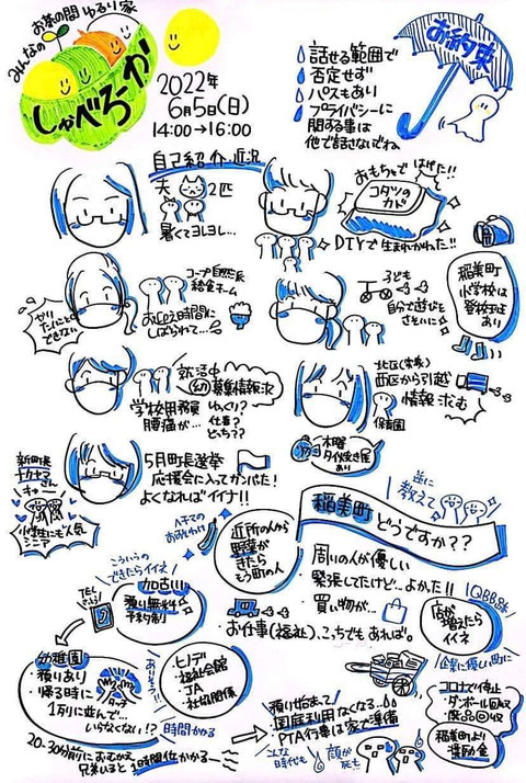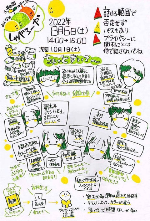 おしゃべり会の様子はグラレコにまとめてもらっていましたので、当時のグラレコをご紹介します。
